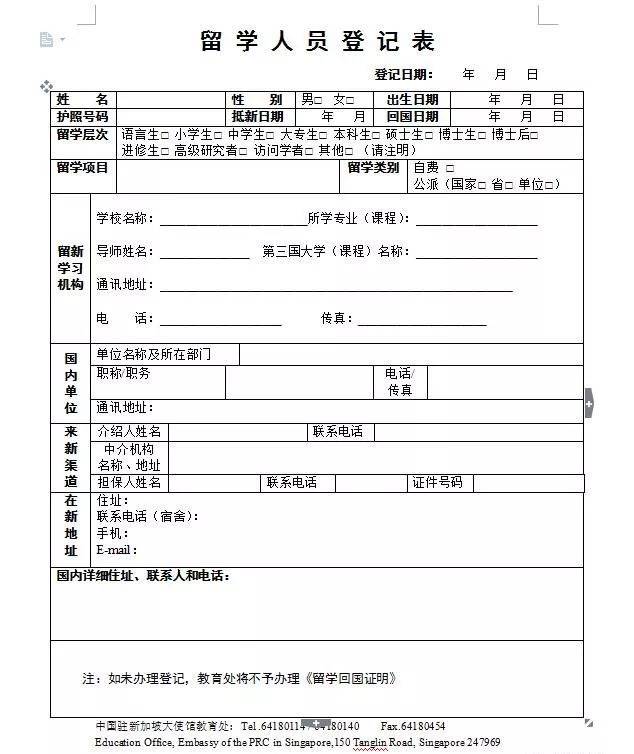 办理机构:中华人民共和国驻新加坡共和国大使馆教育处