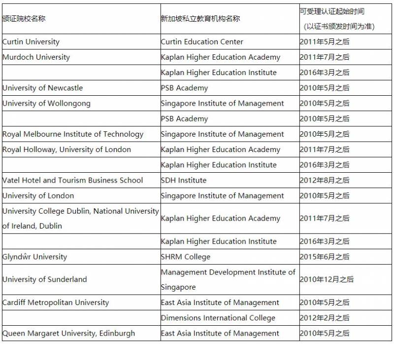 请广大新加坡留学人员注意,我中心将依据相关教育机构获得新加坡私立教育理事会4年期信托认证的时间为限,仅为在此后获颁文凭证书的申请者提供认证服务,并依据《国(境)外学历学位认证评估办法》,对相应文凭证书进行个案评估后出具认证结果。