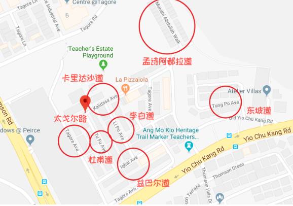 位于杨厝港的Teacher’s Estate(教师园)不愧是老师们住的地方,书香味浓厚。小区不少街道都是古今中外的大文豪,比如:
