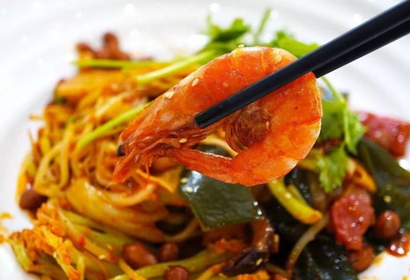 加入辗碎的辣椒、虾米、芝麻、花生,油炸后完成。