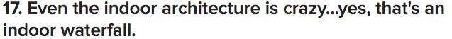 室内设计也是壮观无比~这种从屋顶泼下来的瀑布,就在新加坡的金沙~