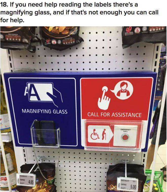 逛超市时若看不清标签,那里有放大镜给你用。你也可以按钮寻求帮助