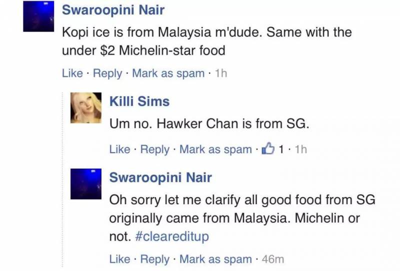 另外还有网友咬定Kopi Peng和少过2块钱的米其林美食(甚至新加坡的所有美食)都源自于马来西亚。