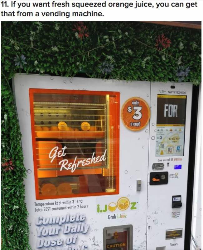 想来一杯鲜榨的橙汁,自动贩卖机上就有!