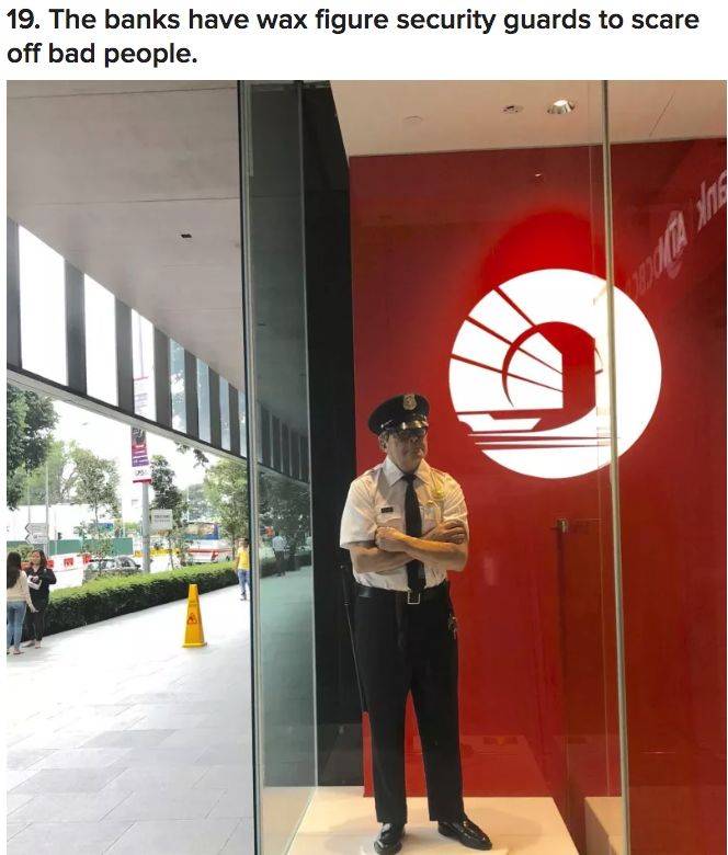 银行外有保安蜡像,以便吓走那些不怀好意的人