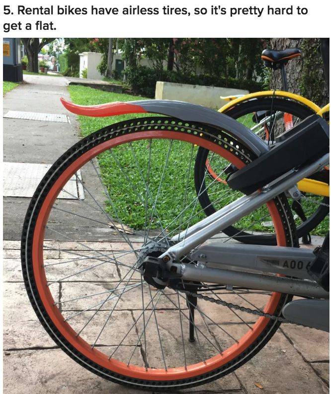 共享脚踏车使用无气轮胎,从此,再也不用担心骑到一半会突然爆胎了。