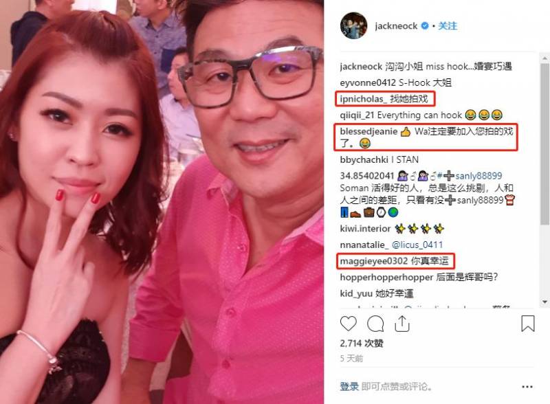 新加坡著名导演梁志强在一个婚礼上偶遇钩钩姐,还要求和她拍合照,“粉丝”般地发了Instagram: