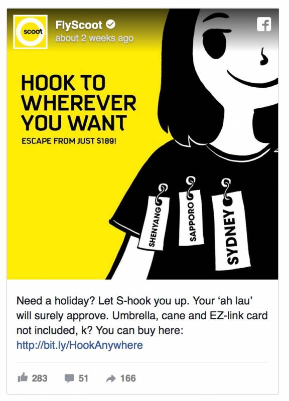酷航身为新加坡航空公司集团下属品牌,也是很接地气的:蹭钩钩姐的热点,推自己的航线。