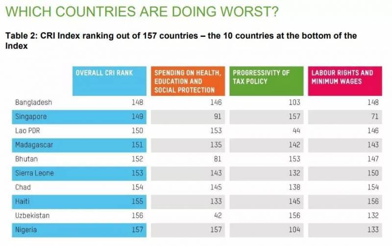 就在近日,慈善组织乐施会(Oxfam)根据各国政府在处理贫富差距上的作为,做出了全球157国的排名。垫底的是157名的尼日利亚,印度排名147,让人感到惊讶的是,新加坡竟是第149名,位列倒数!