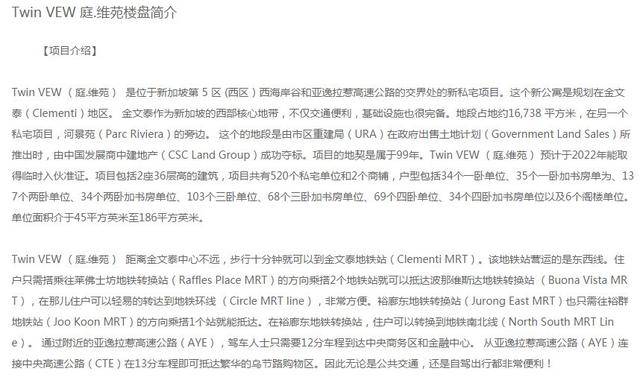 我们从新加坡和香港的房产网站上随机挑选5个新楼盘进行价格对比!