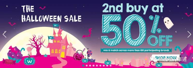 为迎接万圣节,屈臣氏特推出特价,第二件商品半价!