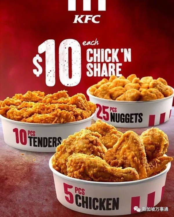 说好的要减肥!看到肯德基10元炸鸡的时候,我放弃了!这个10新元的炸鸡餐,可以有3种选择,5个完整的炸鸡翅,10个辣味炸鸡,25个原味鸡。