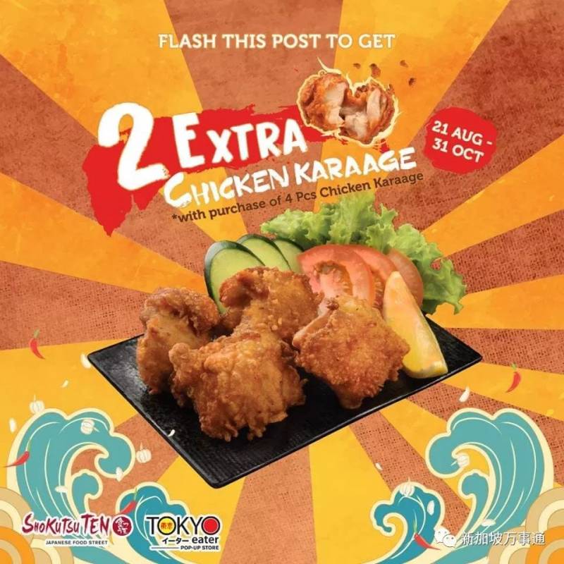 现在在Shokutsu Ten只要购买4块日式炸鸡,就可以免费获赠两块哦~
