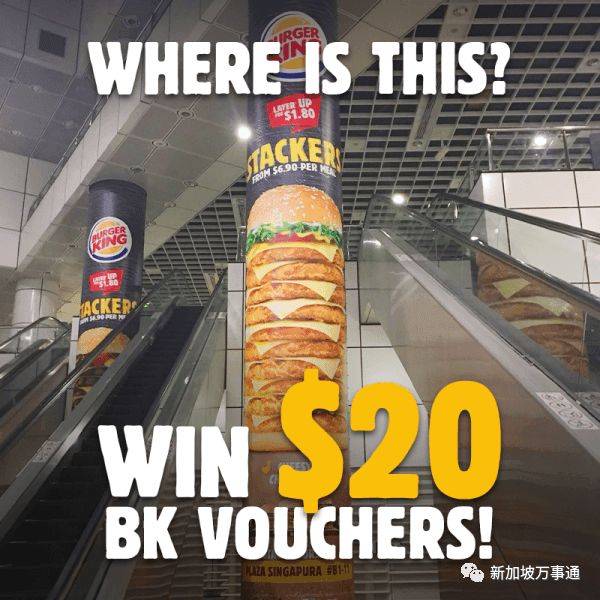 看到这种超多层汉堡是不是好想吃?现在Burger King的活动您还有机会赢得20新元的代金券!还能吃到超多层肉饼的汉堡。