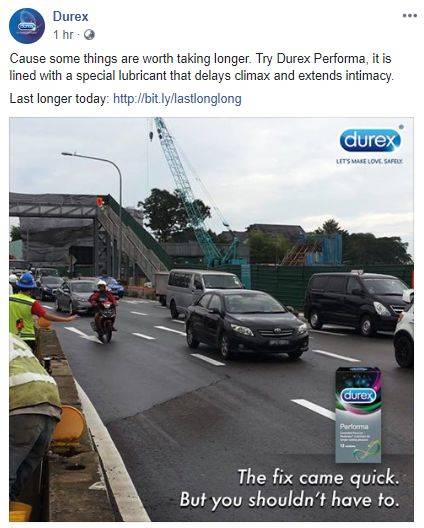 新加坡的宜家抢了杜蕾斯的地位,那正版的杜蕾斯就会服吗?他们用说话,今年6月,新加坡罗尼路路面迸裂,造成严重交通堵塞的时候,杜蕾斯就火速献策。