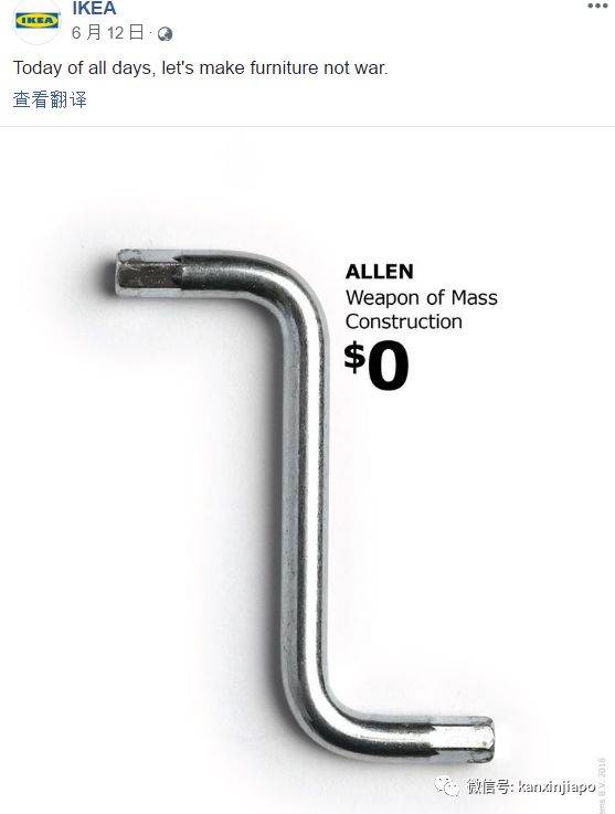 6月12日,特朗普和金正恩在新加坡会晤,发布了一系列活久见的声明。这么大的事情,就算跟卖家居的宜家没有什么关系,但是热点还是可以蹭一蹭的。于是……“今天,让我们来做家具,而不是制造战争”。