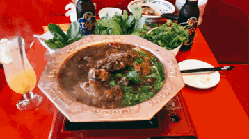 满族全羊铺的羊蝎子锅有着祖传的秘方汤头