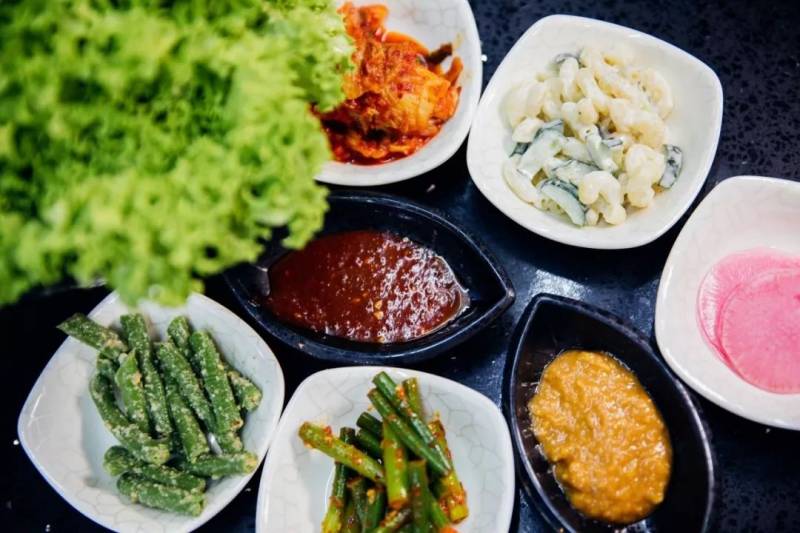 配上韩式辣酱的鲜甜滋味和脆爽的小菜