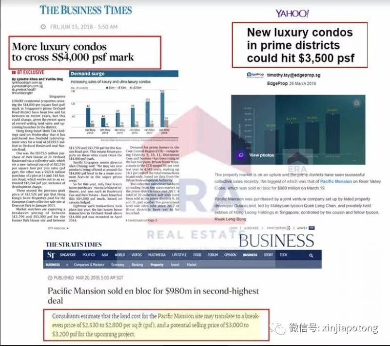 据新加坡商业时报Business Times报道,新加坡豪华公寓已经超过$4000/平方英尺的单价。