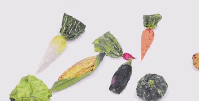 用可降解材料制成的包装纸,印上不同蔬菜的图案。
