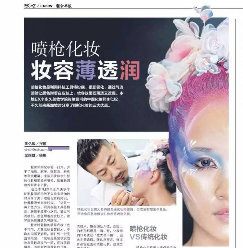 身为喷枪化妆领域的专家,Ricky现担任EX国际半永久美妆培训学院的顾问,曾接受过新加坡最大的中文报纸《联合早报》的专访: