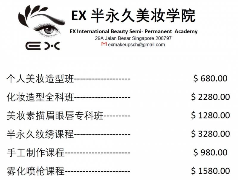 除了以上这些,EX国际半永久美妆培训学院还提供专业化妆师必备妆面、日常妆、学院明星立体底小脸妆、时尚新娘妆/复古新娘妆、新娘日妆转换新娘晚妆、舞台妆、影视特效装、喷枪创意妆/欧美仿妆、美妆素描、手工制作等课程。