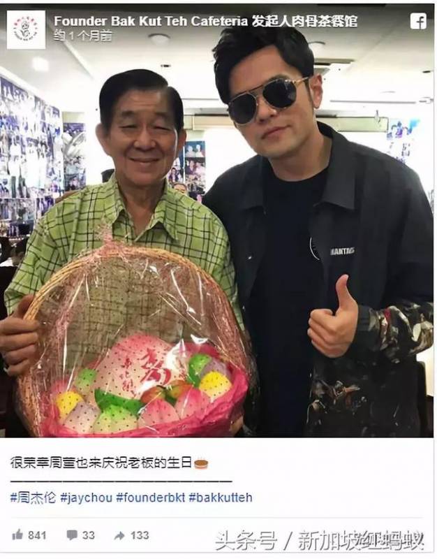 著名肉骨茶餐馆发起人(Founder Bak Kut Teh)就在其官方面簿上刊登了一则贴文:“很荣幸周董也来庆祝老板的生日。”并附上了两人的合照。