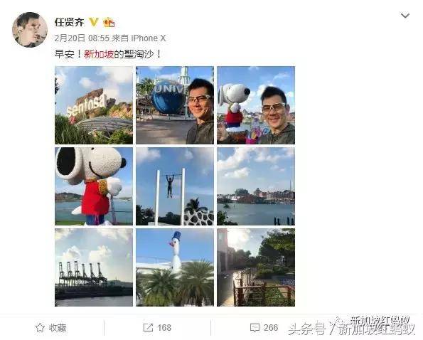 今年2月,任贤齐悄悄来到新加坡圣淘沙环球影城转了一圈,然后发了条微博,道了声早安: