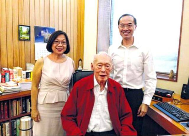 杨荣文与夫人梁利平到李光耀的办公室,向他祝贺90岁生日