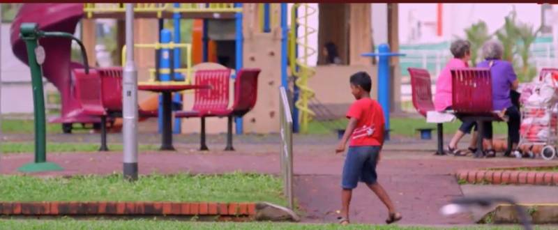 不远处的组屋里,则是完全不同的风景,各家各户必须共享长廊、小孩子公共区域踢球,安哥安娣在组屋特有的椅子上聊天......