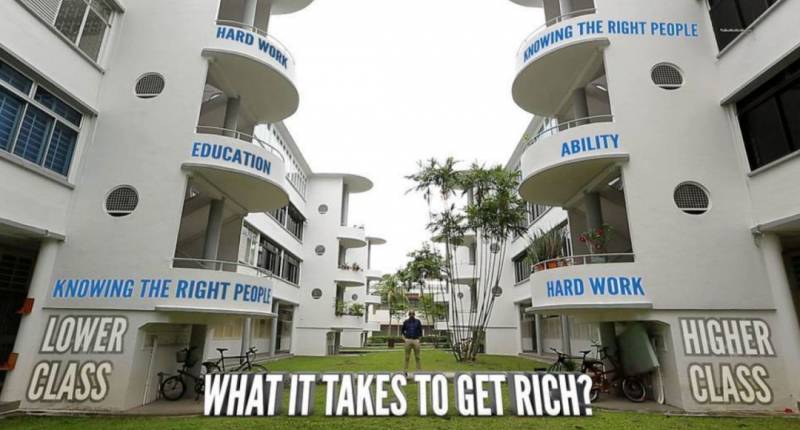 在关于“怎么去致富”的问题调查中,低层阶级认为排第一位的是人脉,随后是文凭与努力。上层阶级则认为最重要的是工作努力和有能力,人脉排位最后一位。