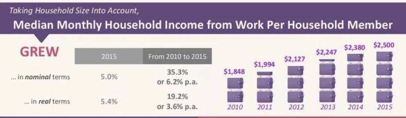 新加坡统计局显示,在2015年,平均个人收入在2500新币左右的家庭属于中产阶级。