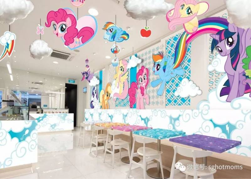 因为它是以My Little Pony小马宝莉的主题,餐厅已彩虹色为主,当然还有6位星级的小马 – Applejack,Fluttershy,Pinkie Pie,Rainbow Dash,Rarity和Twilight Sparkle。