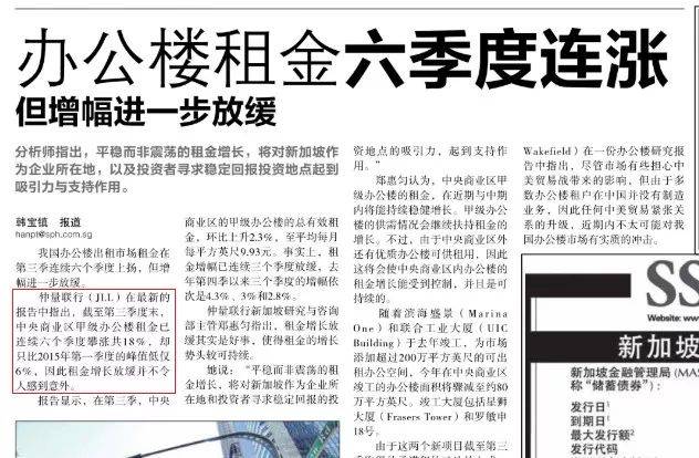根据10月份最新的报道,新加坡办公楼租金市场,已经连续六季度平稳上涨,总共涨幅18%。