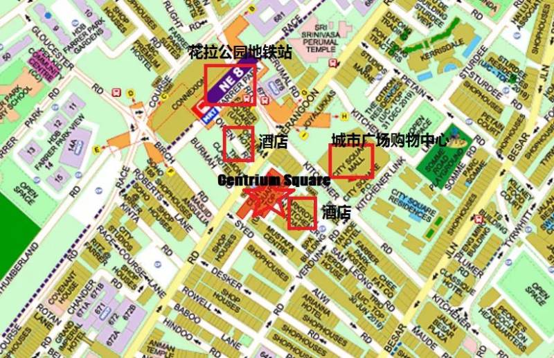 Centrium Square的地点在花拉公园地铁站 (Farrer Park) 对面,仅仅200米距离,3分钟步行可达。