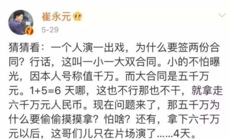 虽然小崔后来又说,哎呀弄错了!靠“阴阳合同”拿了六千万的这位兄弟说的不是范冰冰!