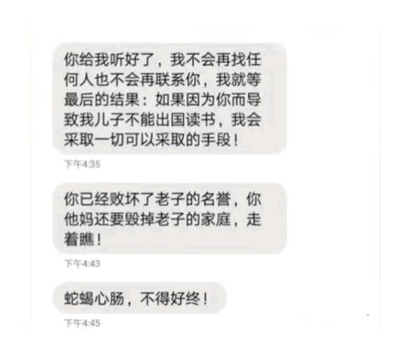 文中,作者还放上了一些简讯截图,来证明和章文之间的往来沟通,截图的简讯中不乏威胁的内容。