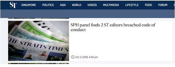 在舆论导向直视SPH,甚至延伸到大公司职场骚扰之时,同属SPH的《海峡时报》和《联合早报》如实报道了“家丑”。