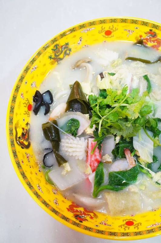 嫩鱼片、大虾仁、鱿鱼以及各种丸子