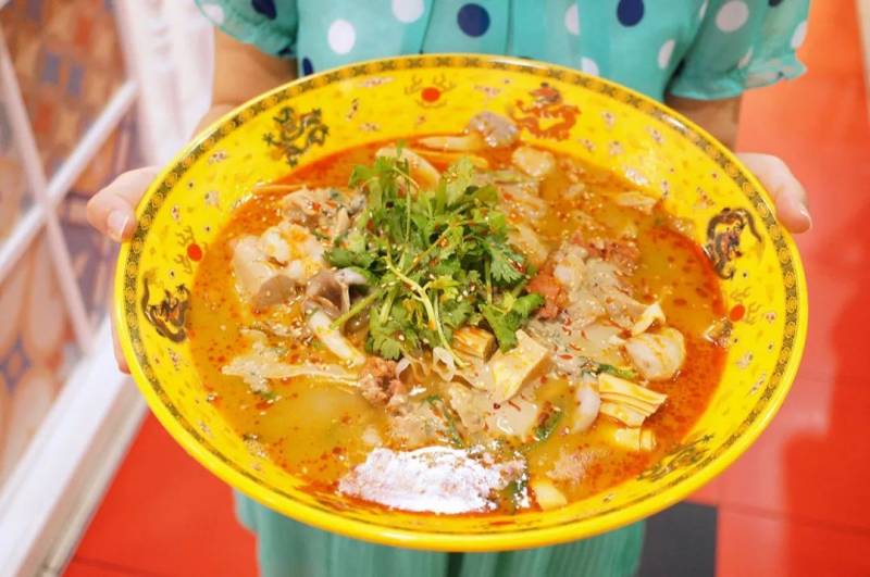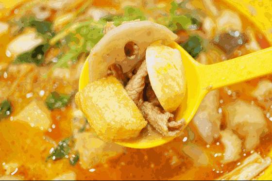 山鸡麻辣香锅的骨汤煮出来的每样食材