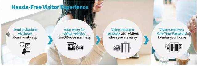 二是智能访客功能,通过手机邀请访客,访客可以通过一次性密码进入居民家中,居民可以实时了解访客在家中的活动状况,你还可以设定访客的滞留时间;