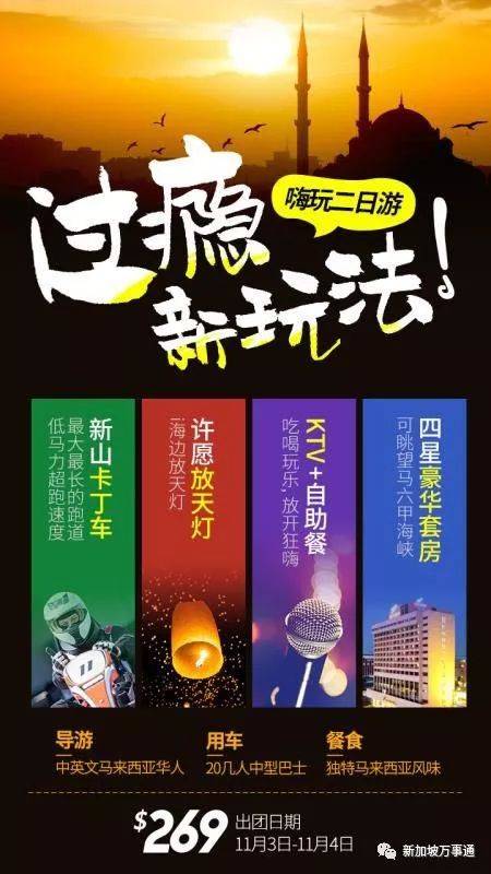 酷玩卡丁车、high唱KTV、组团狼人杀..... 一边吃喝玩乐,品尝大马传统美食;一边身心放纵游览马六甲历史宗教人文风情,带你解锁大马全新玩法~