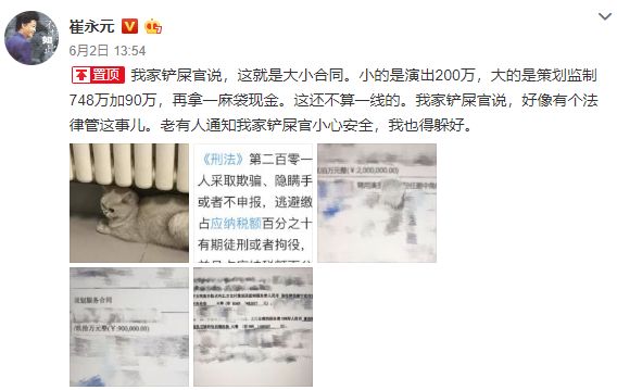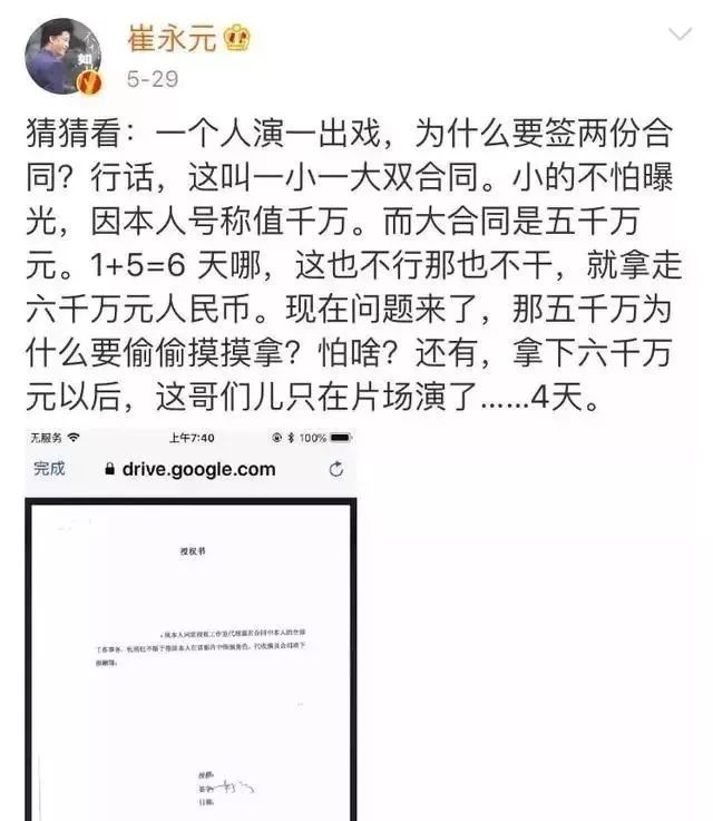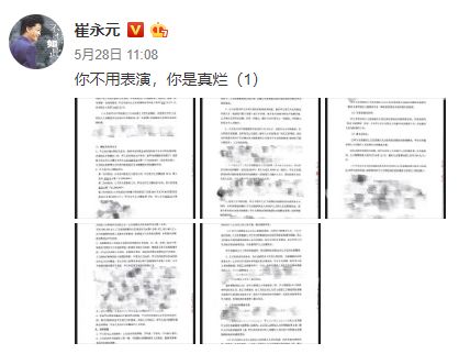 5月29日,崔永元再发微博科普,吃瓜群众不明所以,明眼人看出来这个是“阴阳合同”。