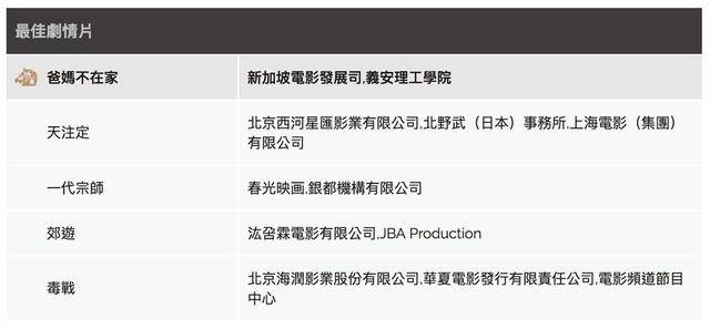 当我翻开2013年金马奖获奖名单,发现最佳剧情片得奖的《爸妈不在家》是新加坡拍的时,着实有些吃惊。