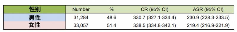 2011年至2015年期间居民中,有31284(48.6%)男性患者,和33057(51.4%)的女性患者,龙妹瑟瑟发抖。