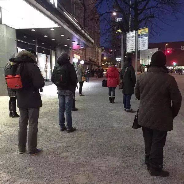 在芬兰,从排队方式 一眼就能分出本地人和外国游客 外国人:我们这是抱团取暖 芬兰人:我们这是保持1米9