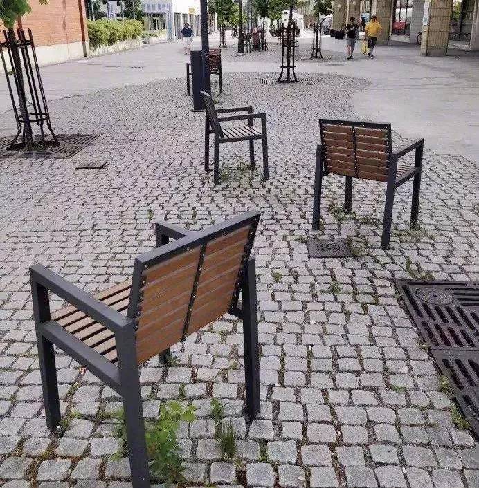 公共座椅呈45度,背对的单人设计