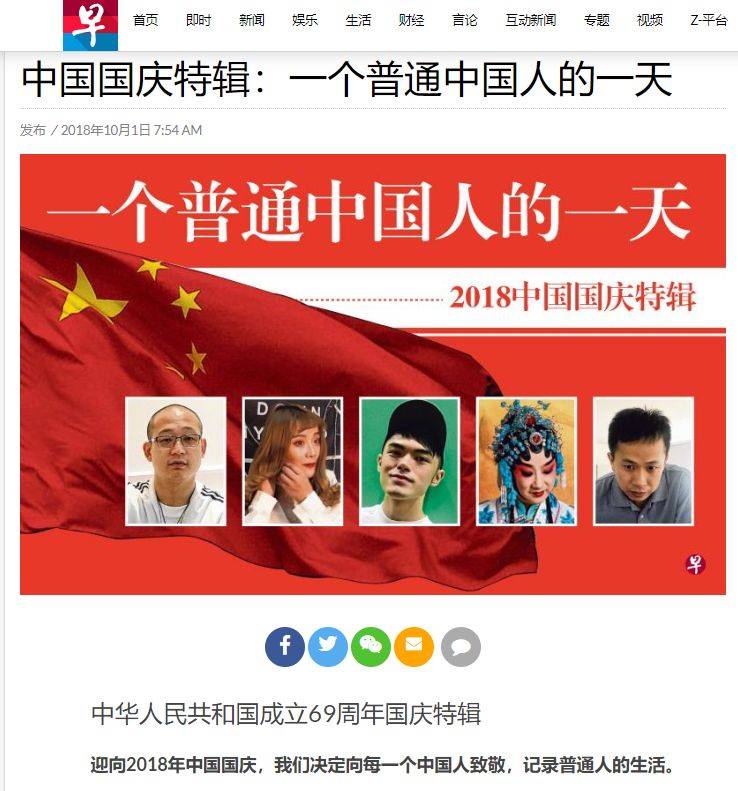 联合早报:国庆特辑 —— 一个普通中国人的一天