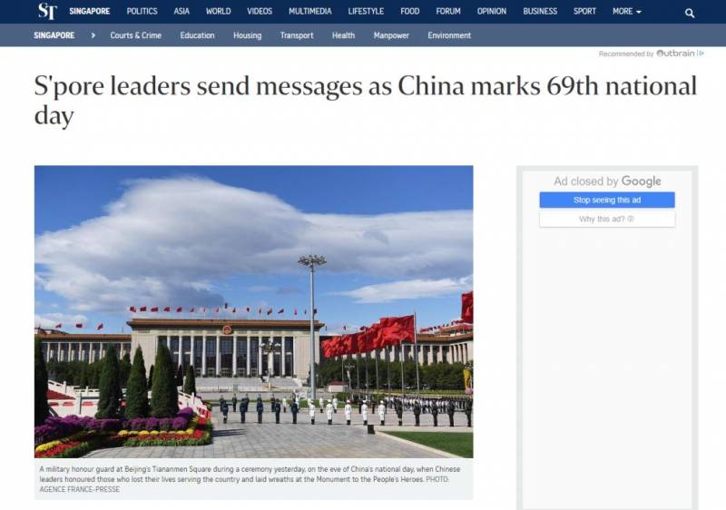 海峡时报:新加坡领导人发信息祝福中国69周年国庆节