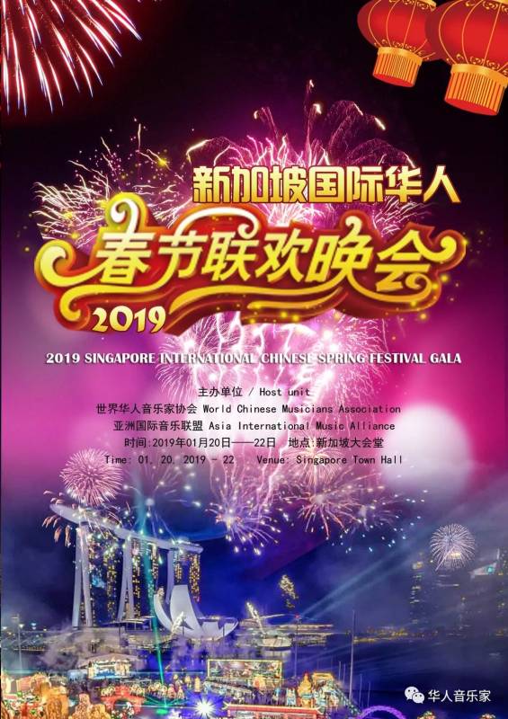 第二届即2019新加坡国际华人春节联欢晚会将于2019年1月20日在新加坡大会堂(华乐团音乐厅)举办。